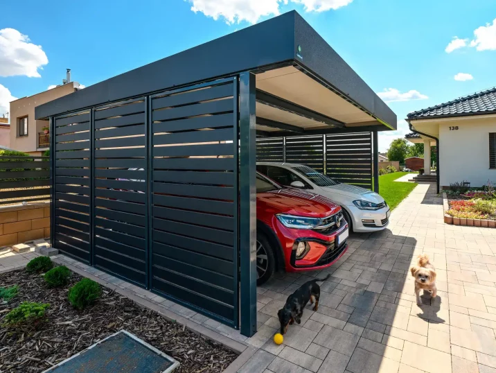 Die Konstruktion und auch die Wände Ihres Carports werden im Laufe des Jahres unterschiedlichsten Wetterbedingungen ausgesetzt – Sonne, Schnee, Hagel, Regen, Wind,… Um sämtlichen Witterungsbedingungen standhalten zu können, werden bei der Herstellung der Carports nur beständige und qualitativ hochwertige Materialien benutzt. Zudem verfügt die Konstruktion des Carports über eine spezielle Oberflächenbehandlung, dank derer das Bauwerk maximal wartungsfrei ist – es genügt schon, das Carport ab und zu mit Wasser zu reinigen (oder mithilfe eines Hochdruckreinigers). Einen weiteren Vorteil bietet auch die Möglichkeit, das Carport durch die wählbaren Komponenten zu individualisieren. Sie können sich selbst ein praktisches, originelles und zugleich modernes Carport entwerfen.