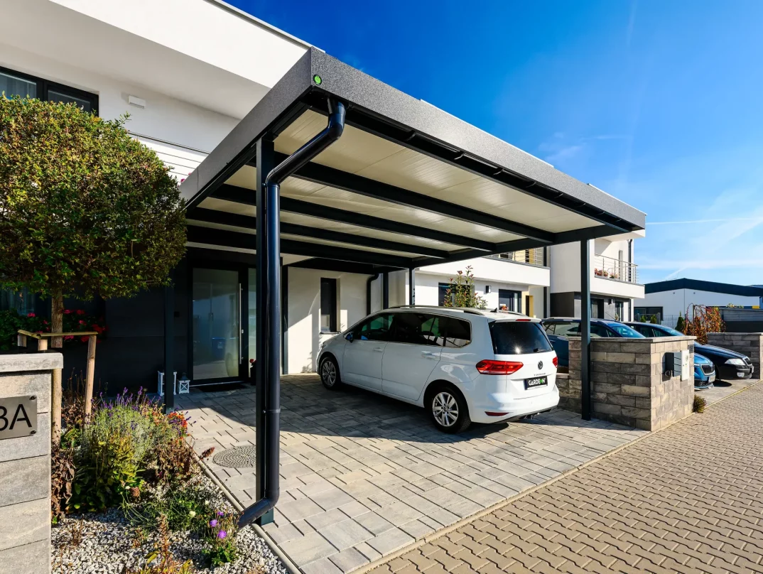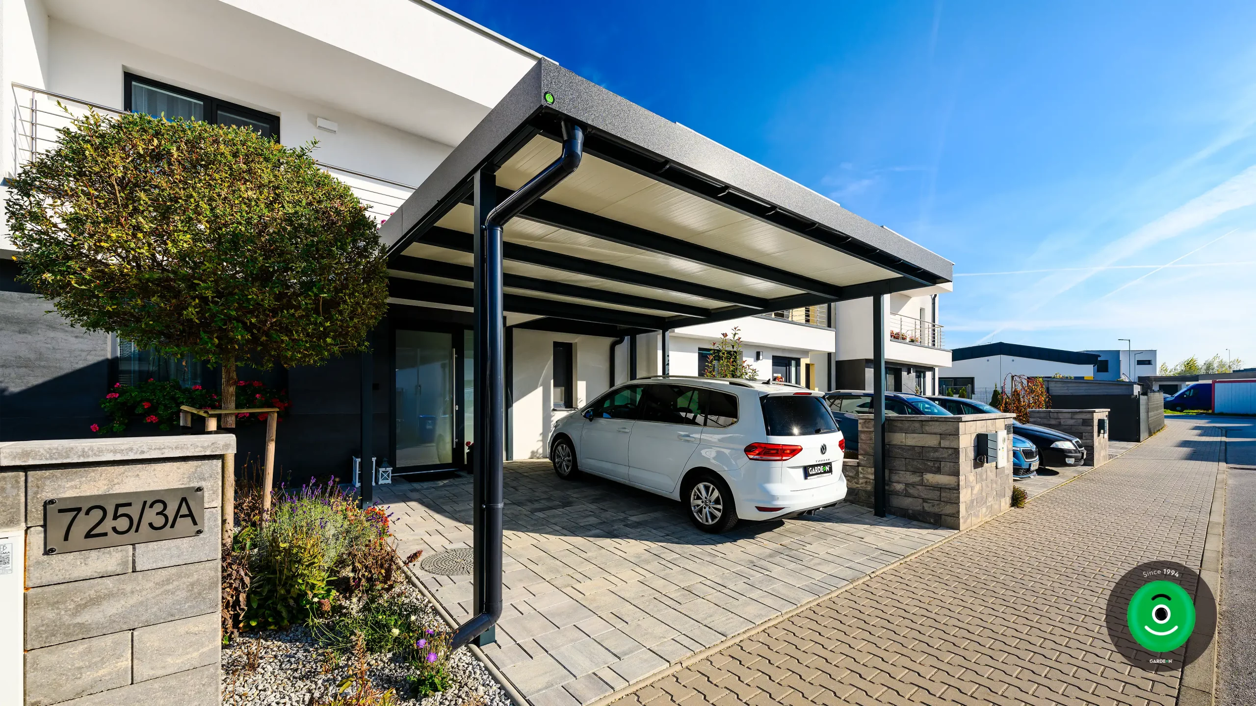 Die Wandelemente der Carports von GARDEON bestehen aus horizontalen Latten, die in 4 Farbvarianten zu haben sind (weiß, braun, anthrazit, weißes Aluminium). Das Carport lässt sich daher optimal an die Fassade Ihres Hauses anpassen.