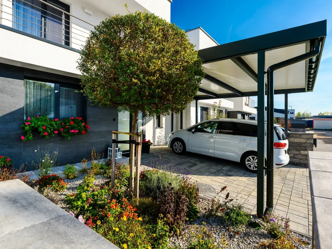 Unsere GARDEON Carports verfügen über eine beständige Fertigbau-Stahlkonstruktion, die dank der qualitativ hochwertigen Feuerverzinkung auch noch über eine enorme Lebensdauer verfügt. Diese Form der Oberflächenbehandlung sorgt für eine bis zu 5x längere Lebensdauer als eine gewöhnliche, günstige Oberflächenbehandlung. Die komplett verzinkte Konstruktion wird schon bei der Herstellung Ihren Farbvorstellungen angepasst. Dadurch ist sowohl die große Beständigkeit als auch die Wartungsfreiheit gesichert.