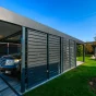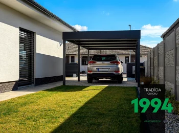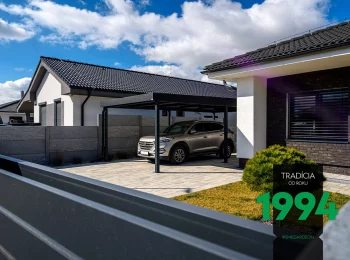 Die Basis der GARDEON Carports bildet eine widerstandsfähige Stützkonstruktion aus Stahl, an der das Pultdach mit einem niedrigen Gefälle angebracht wird. Die Tragekonstruktion des Carports für ein Auto bilden 6 bis 8 Stützen mit den Maßen 10×10 cm (an jeder Seite des Carports befinden sich 3 oder 4 Stützen, abhängig von der Größe des Carports). Die Dachkonstruktion bilden Stahlträger, auf denen die Dachdeckung angebracht ist. Die Ränder des Daches sind unter der Attika verborgen.