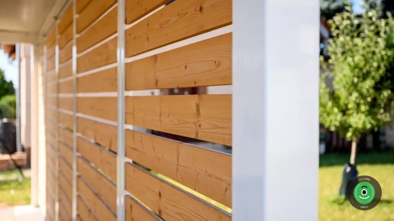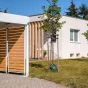 Abgeschlossen wird die Konstruktion durch die anpassbaren Wandpaneele: Die Paneele selbst bestehen aus einem unauffälligen Rahmen, in dem die formschönen Holzverkleidungen befestigt sind. Zur Auswahl stehen Paneele in den Maßen 1×2 oder 1,2×2 m, die man ganz nach Ihren Wünschen an verschiedenen Seiten des Carports anbringen kann. Sowohl zwischen den Paneelen und dem Boden als auch zwischen den Paneelen und dem Dach ist immer ein Spalt vorhanden (die Größe des oberen Spalts hängt vom Dachgefälle ab).