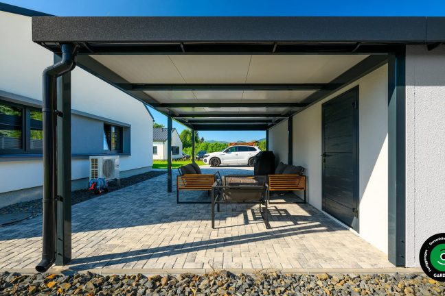 Verfügen Sie in der Familie über mehrere Autos? Würden Sie eine Garage gebrauchen, die Ihnen ein großes Spektrum an Nutzungsmöglichkeiten anbietet? Die optimale Lösung könnte für Sie eine Garage mit Überdachung darstellen – Sie gewinnen damit einen weiteren Parkplatz für Ihr Auto oder einen Lagerraum für Holz.