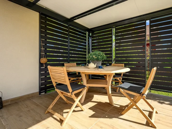 Die Bauwerke bestehen stets aus beständigen Materialien, die es ermöglichen die Pergolen langzeitig und sorglos zu benutzen. Holz ist zwar recht schön und stylisch, aber nur in dem Fall, dass Sie auch viel Zeit in seine Wartung investieren. Diesbezüglich bietet unsere Stahlkonstruktion einen großen Vorteil – sie ist nicht nur elegant und modern, sondern auch beständig, wartungsfrei und widerstandsfähig. Alle unserer Pergolen bestehen aus hochqualitativen, zertifizierten Materialien, die für das Bekämpfen von Ungewitter und für die lange Lebensdauer sorgen. Wie schon im Text erwähnt, bietet auch die Wartungsfreiheit einen großen Vorteil unserer Produkte – die Pergolen von GARDEON müssen Sie selbst nach langer Nutzung nicht erneut anstreichen oder anders behandeln. Es reicht schon eine Reinigung mit Wasser aus (oder auch mithilfe eines Druckreinigers).