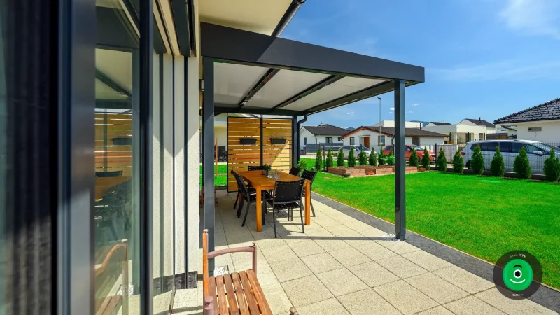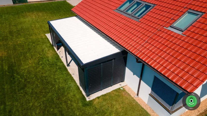 Zu den INDIVIDUAL Pergolen können Sie sich auch eine beliebige Dachdeckung auswählen. Außer eines gewöhnlichen Daches aus Trapezblech können Sie auch die isolierte THP Dachvariante bestellen. Das THP Dach besteht aus einer Sandwich-Konstruktion, die aus Thermopaneelen mit einer integrierten Isolation aus PIR Schaum besteht. Dies sorgt für super Eigenschaften der Wärmedämmung und zudem erhöht es die Stabilität der Dachdeckung und die gesamte Dachlast.