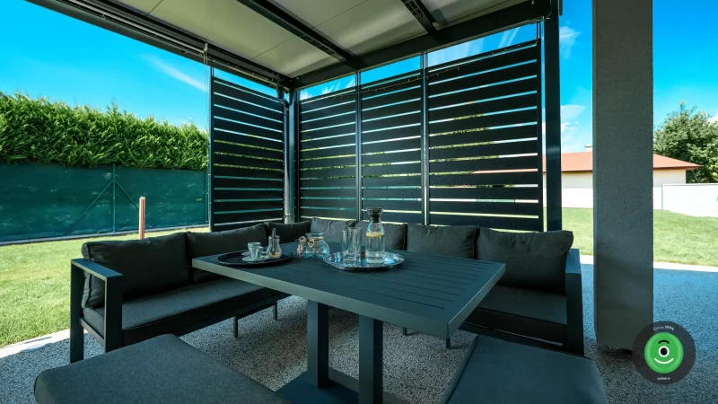 Zu den INDIVIDUAL Pergolen können ganz nach Ihren Wünschen auch Design-Seitenwände angefügt werden. Somit erschaffen Sie sich eine Überdachung die nicht nur vor Wind sondern auch vor neugierigen Blicken der Nachbarn schützt.